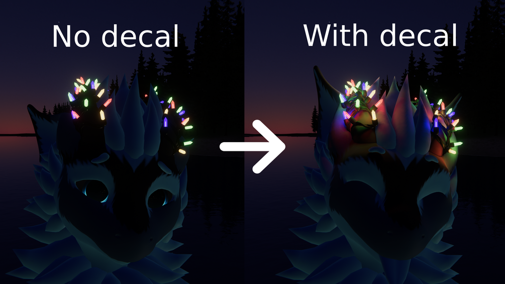 *Poiyomi 8.1 > or other shader supporting emissive decals required for the glow to work.